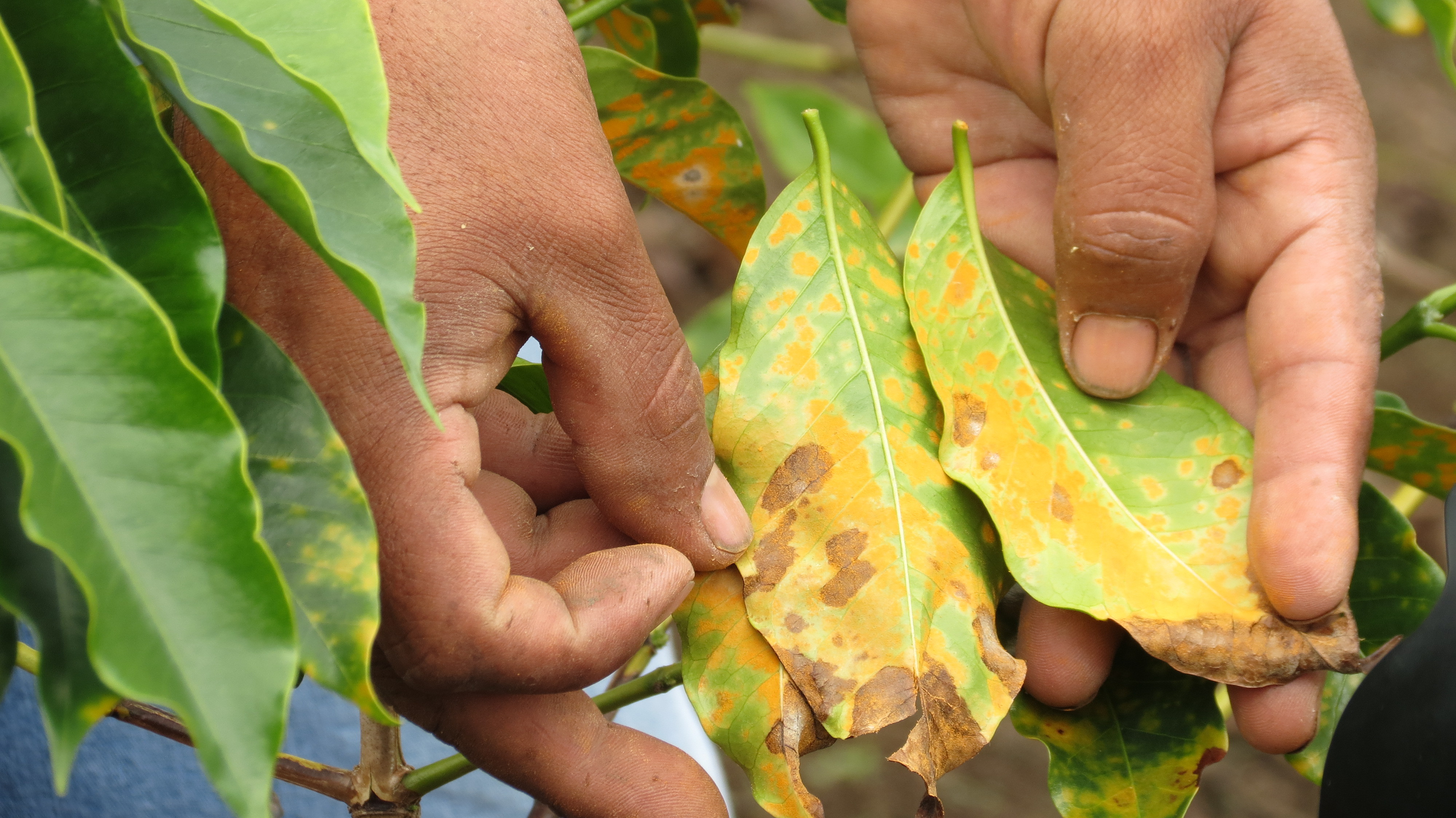 Coffee rust, called La Roya in Spanish, is a fungal disease that weakens and eventually kills coffee trees. The principal causes of the outbreak that is sweeping Central America and northern Peru today are a warmer, wetter climate; historic underinvestment in farms and aging coffee trees. According to the International Coffee Organization, the current epidemic of coffee leaf rust is the highest incidence in 40 years, with more than half of Central America’s coffee farms infected, and losses reaching $1 billion in the 2012-2013 harvest.